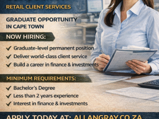 The Allan Gray is offering a permanent graduate role for an Investment Service Consultant – Retail Client Services based in Cape Town. This opportunity is […]